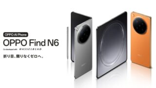 ガジェットOPPO Find N6 日本上陸!Zero-Feel Crease×200MPカメラ×6,000mAh折りたたみスマホの「完成形」がついに国内へ 2026年4月14日、OPPO Find N6がついに日本上陸。折り目をほぼなくしたZero-Feel Crease技術、Snapdragon 8 Elite Gen 5、6,000mAhの大容量バッテリー、ハッセルブラッド監修200MPカメラを搭載。国内価格・スペック・おサイフケータイ対応有無・Galaxy Z Fold7との違いまで詳しく解説。 2026.04.13ガジェット
