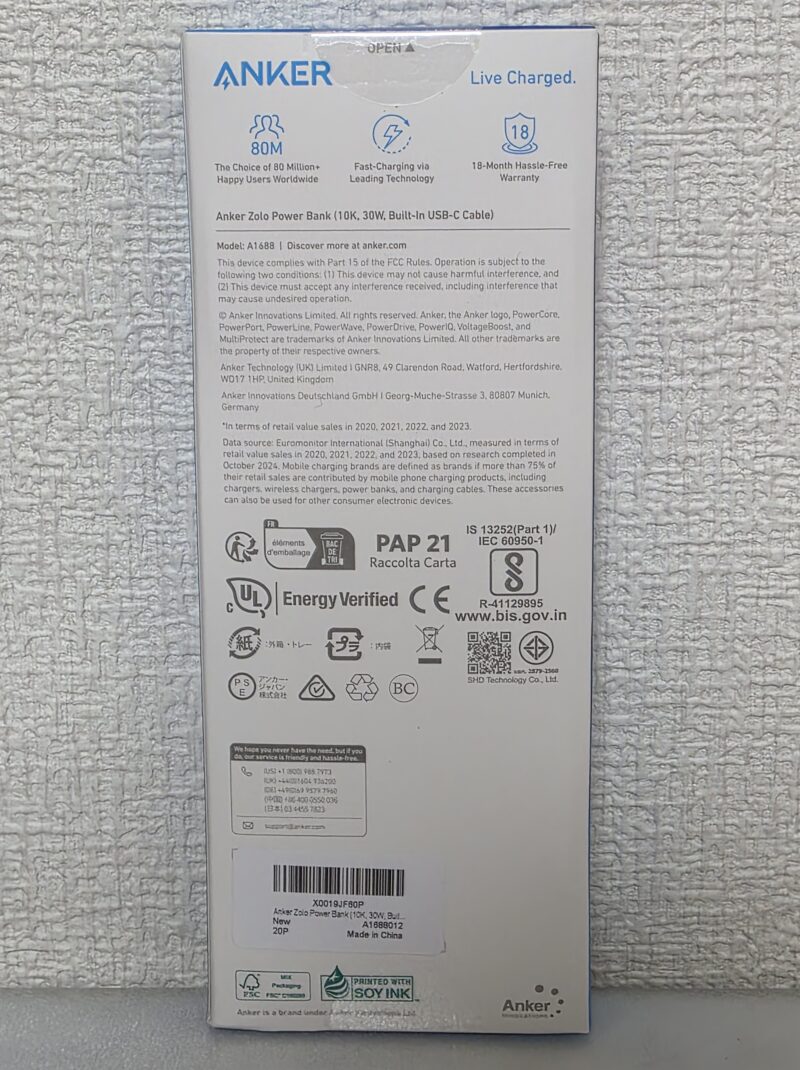 買ったのはAnker Zolo Power Bank(10000mAh、30W、内蔵Type-Cケーブル)