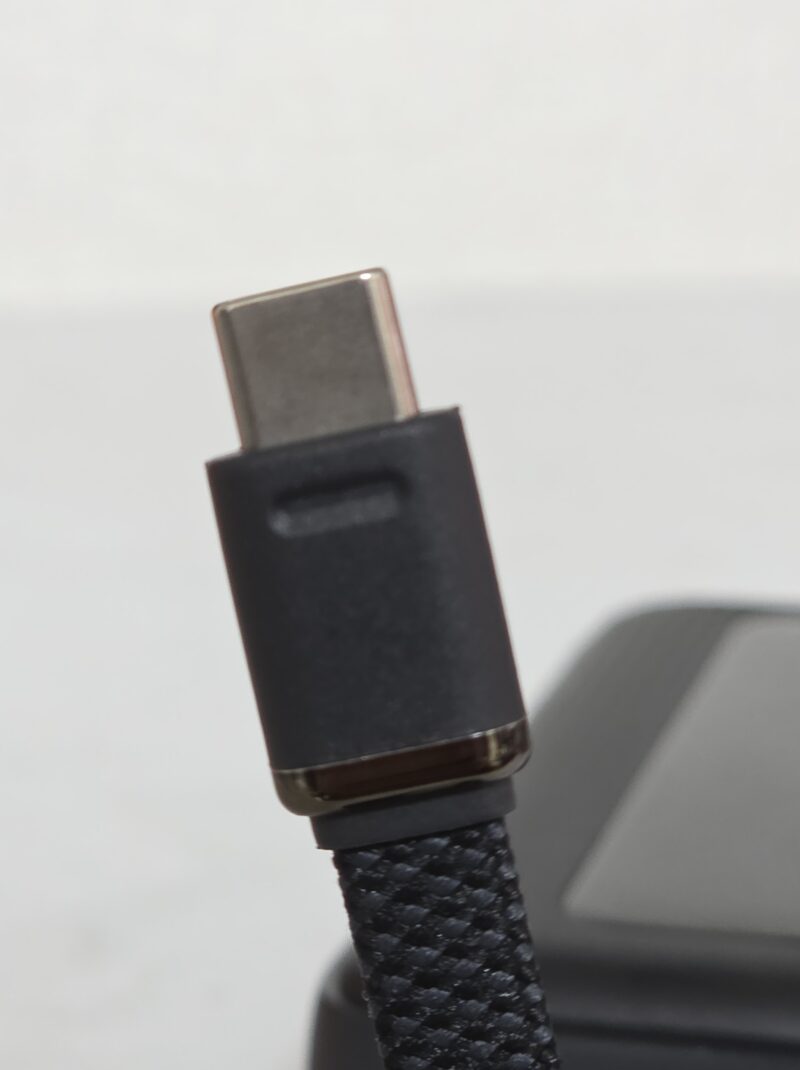 つや消しブラック+ピアノブラックの本体と、飛び出ている内蔵Type-Cケーブルが特徴です!