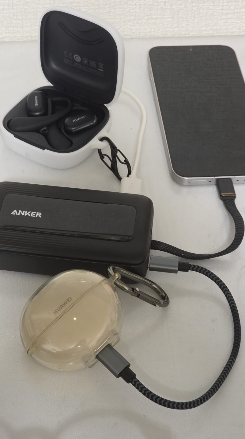 さらにUSB-Aポートを使ってHUAWEI FreeArcも加えて3台同時充電も!