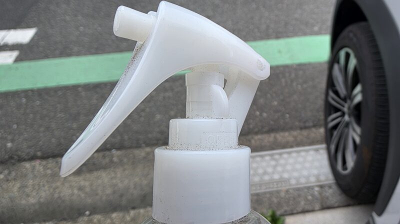 ミラーの表面や隙間に水分が残った状態でスプレーすると、撥水不良や白濁の原因になります。洗車後は必ず十分に乾燥させてから施工してください。