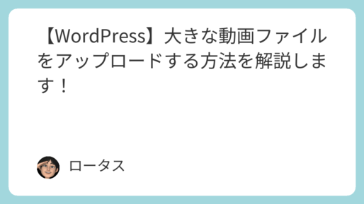 Wordpress【WordPress】容量オーバー?大きな動画ファイルをアップロードする方法を解説します! 当ブログは、レンタルサーバーのConoha WINGを使って、WordPress上で書いています。先日、新たなブログ記事に動画をアップロードしようとしたところ……「このファイルはサイトの最大アップロードサイズを超えています」とのメッセージが... 2026.01.19Wordpressテクニカル