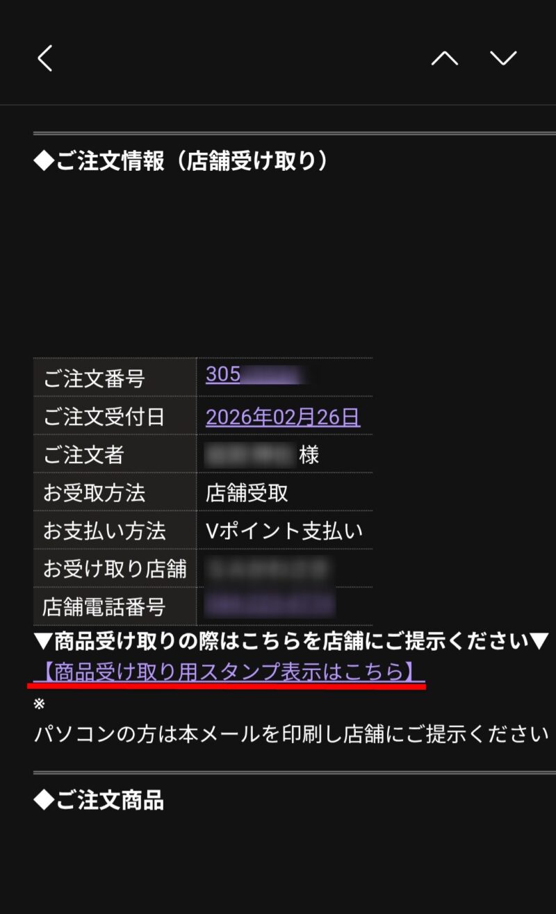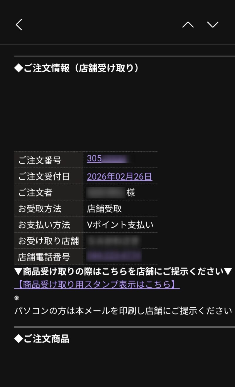 店舗受け取りには、事前に届いていた「商品ご用意完了」のメールを見せるのですが…。
