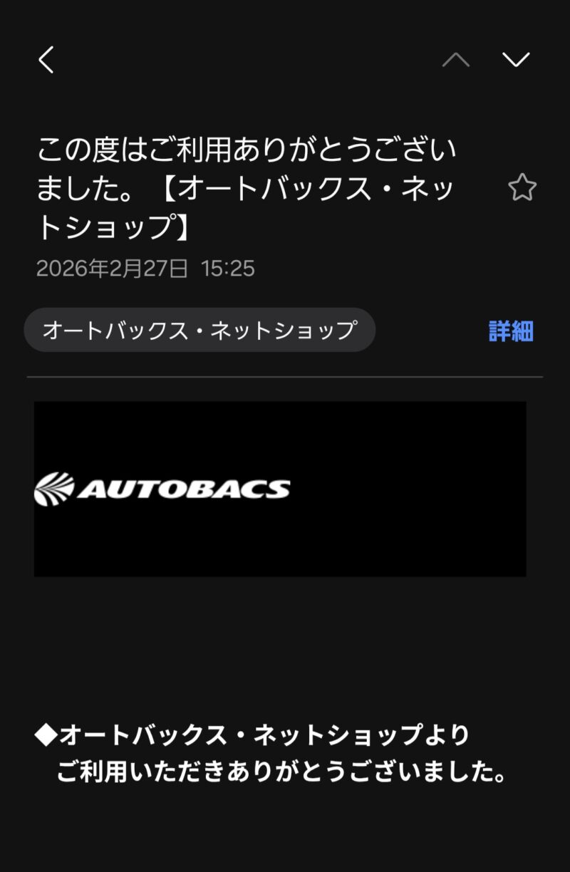 商品が指定したオートバックス店舗に準備完了すると「商品ご用意完了」のメールが届くので、店舗へゴー!