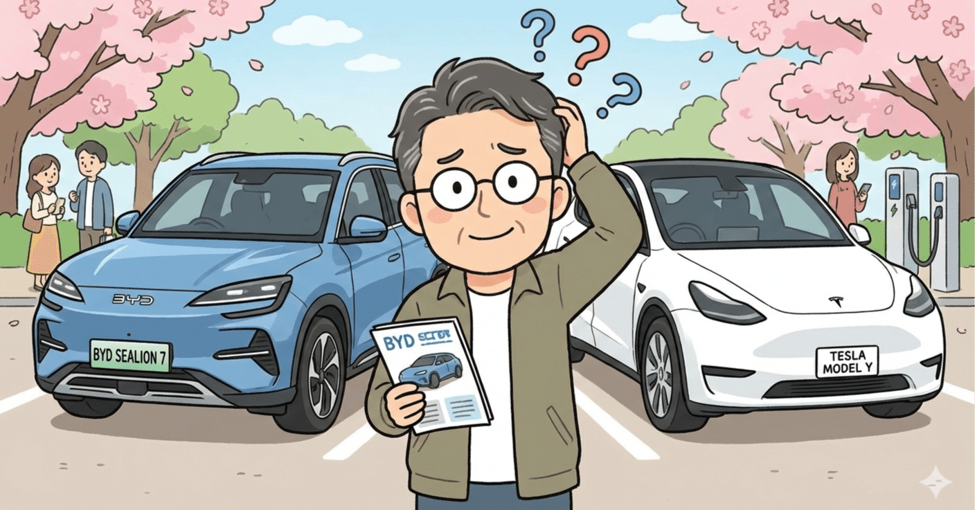 感覚的には、カントリーリスクや日本での認知度を考えると、多くの人がテスラ モデルYを選ぶのではないかと思います(街なかでBYDは見かけないですしね)