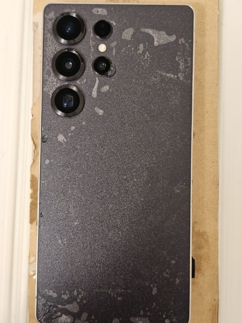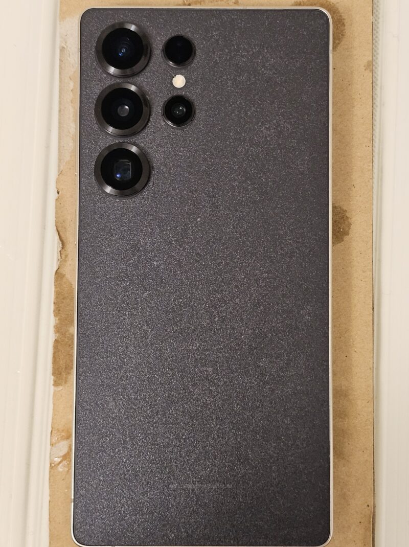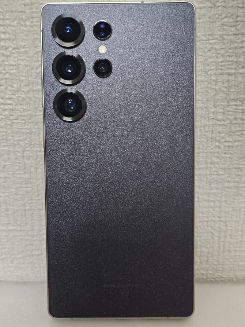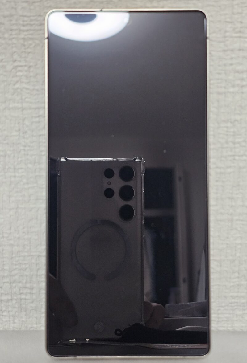 フィルムを貼り付けたら、ほぼ漆黒の状態に。Galaxy S25 Ultraの低反射ディスプレイより、さらに反射が無くなったのは驚きです!