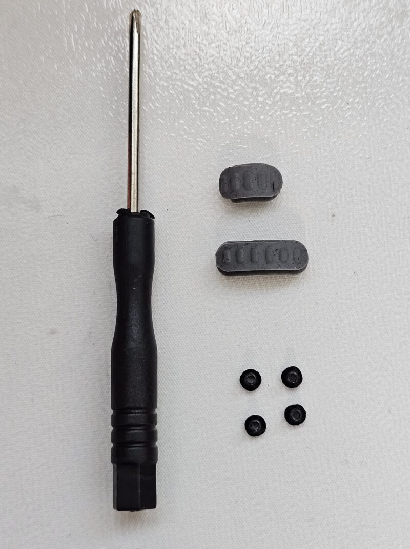ケースを装着するためのネジや、四隅の交換用ゴム素材が予備として付属しています。