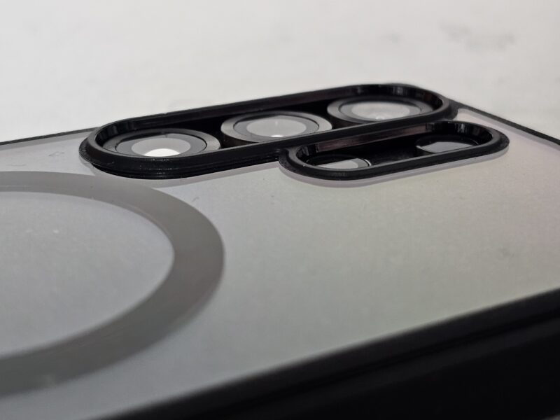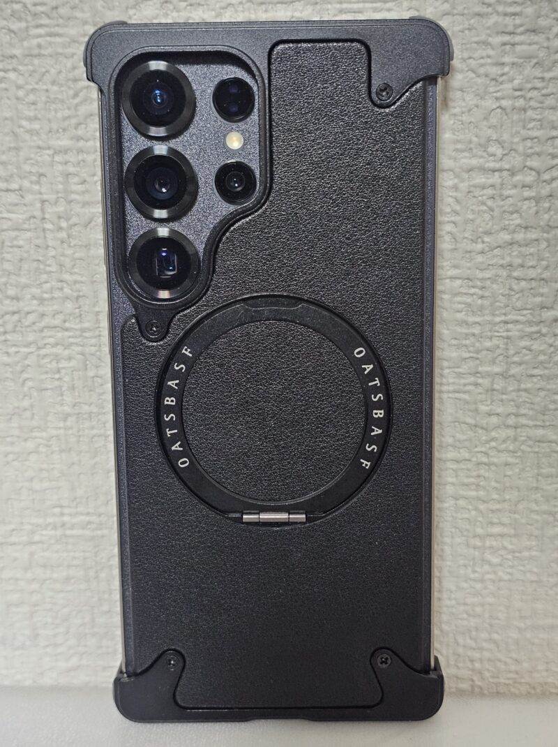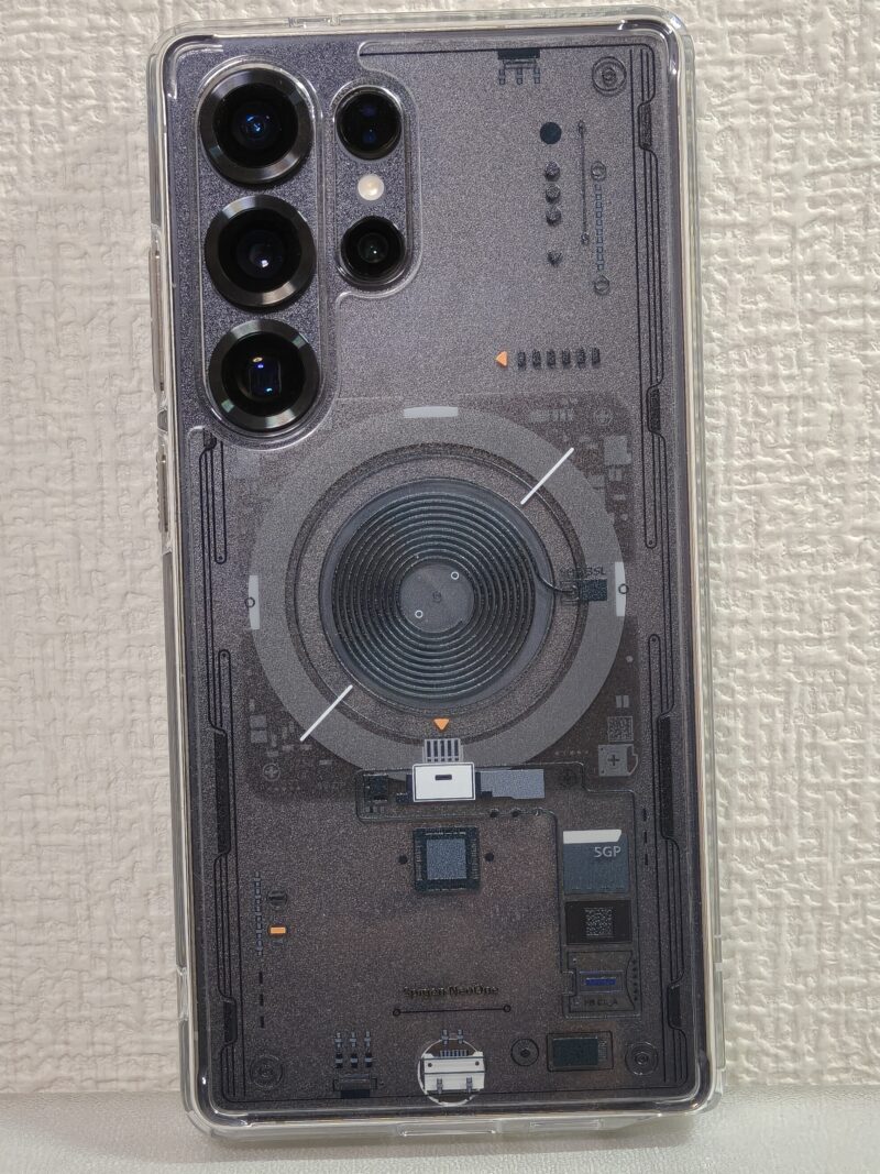 筆者の現在の組み合わせ ケース:Ringke FUSION BOLD + 画面:OverLay Plus Premium + 背面:PDA工房 スキンシール(すりガラス調)。透明な背面とブラックのコントラストでS25 Ultraのデザインを活かしながら、MagSafe機能もしっかり使える構成です。