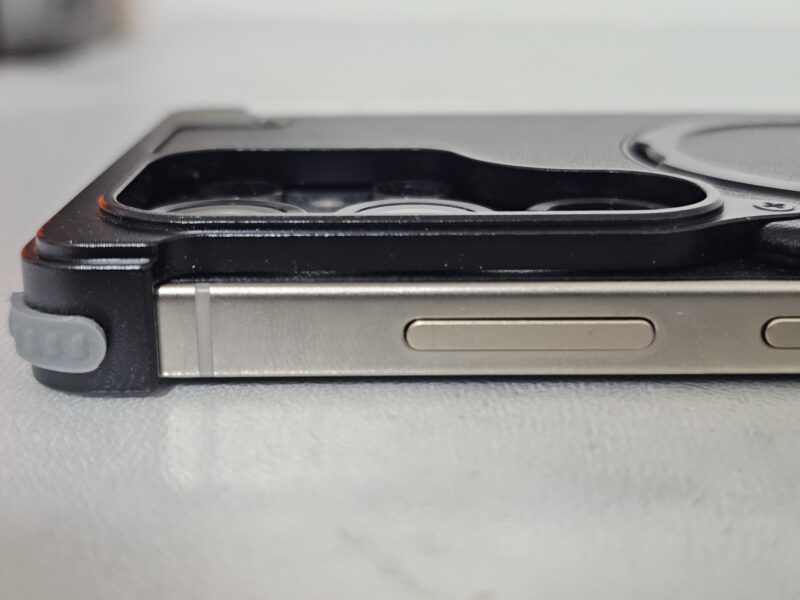 実際に装着してみると、サイドボタンがアルミ製になっており、保護性能もしっかりしていました。Spigen ウルトラ・ハイブリッド (ネオ・ワン)に似た独自のデザインは好みが分かれそうです。
