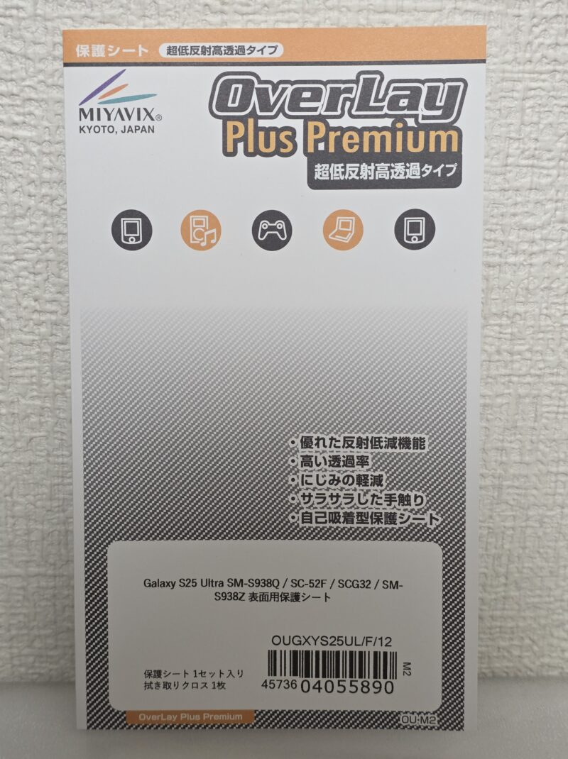 OverLay Plus Premiumはアンチグレア(反射防止)と指紋防止を両立させた保護フィルムです。屋外や蛍光灯下での画面の映り込みを大幅に軽減してくれるため、「ガラスフィルムを貼ると光が反射して見にくい」と感じていた方にはピッタリの選択肢です。