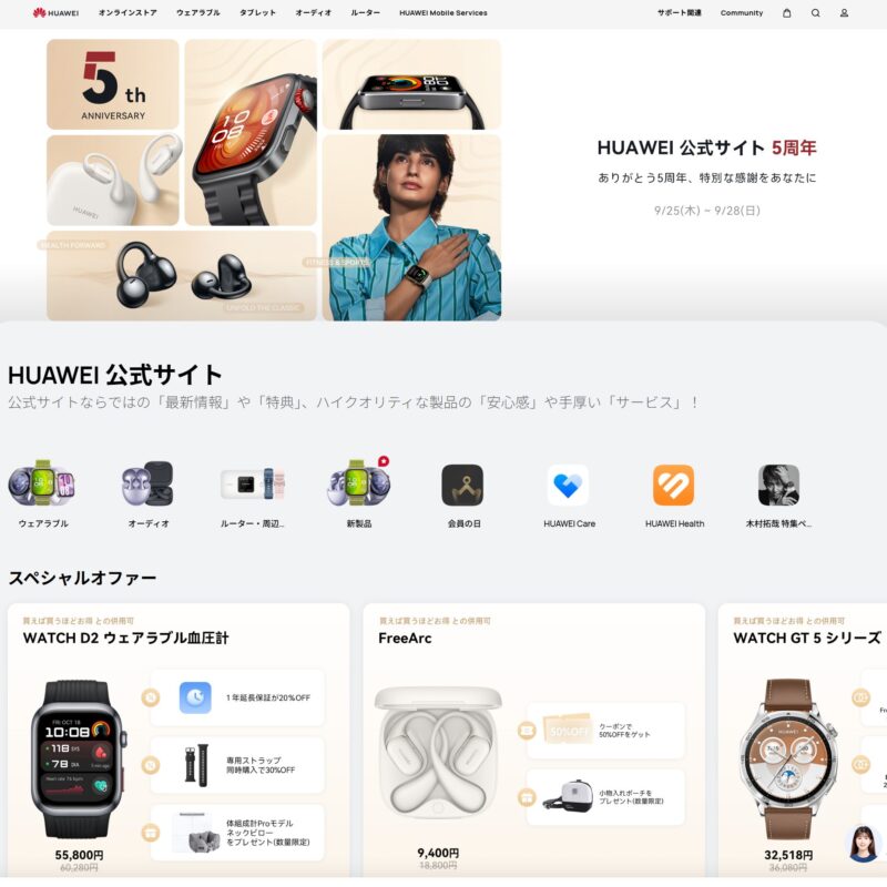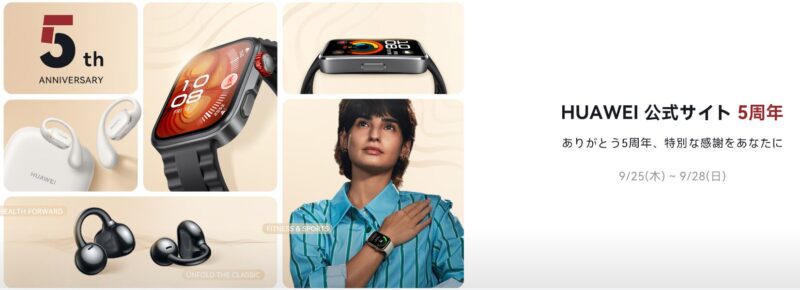HUAWEI 公式サイト 5周年キャンペーン期間は9月28日(日)まで!