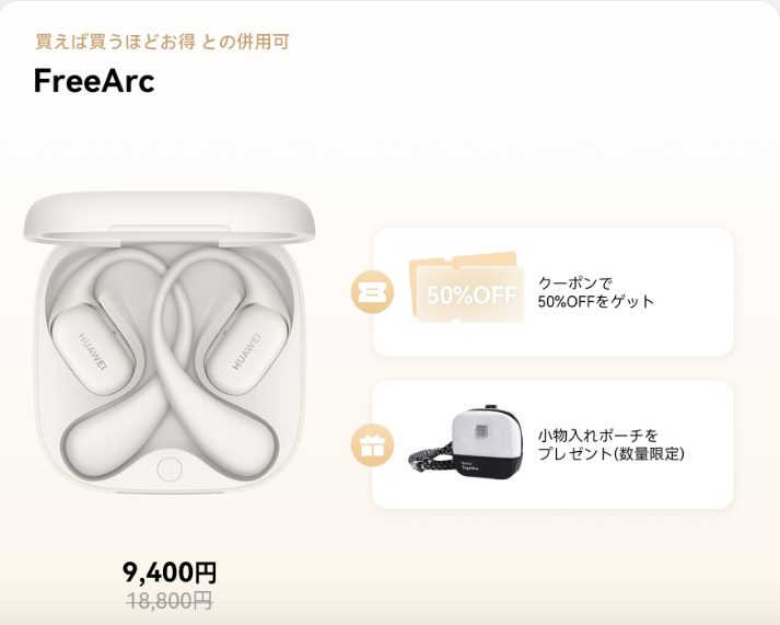 ちょっと興奮してしまいましたが、、、FreeArc以外にもWATCH D2 ウェアラブル血圧計やWATCH GT 5 シリーズもかなり割引されているので、購入検討していた方はぜひ公式サイトをチェックしてもらえればと思います!