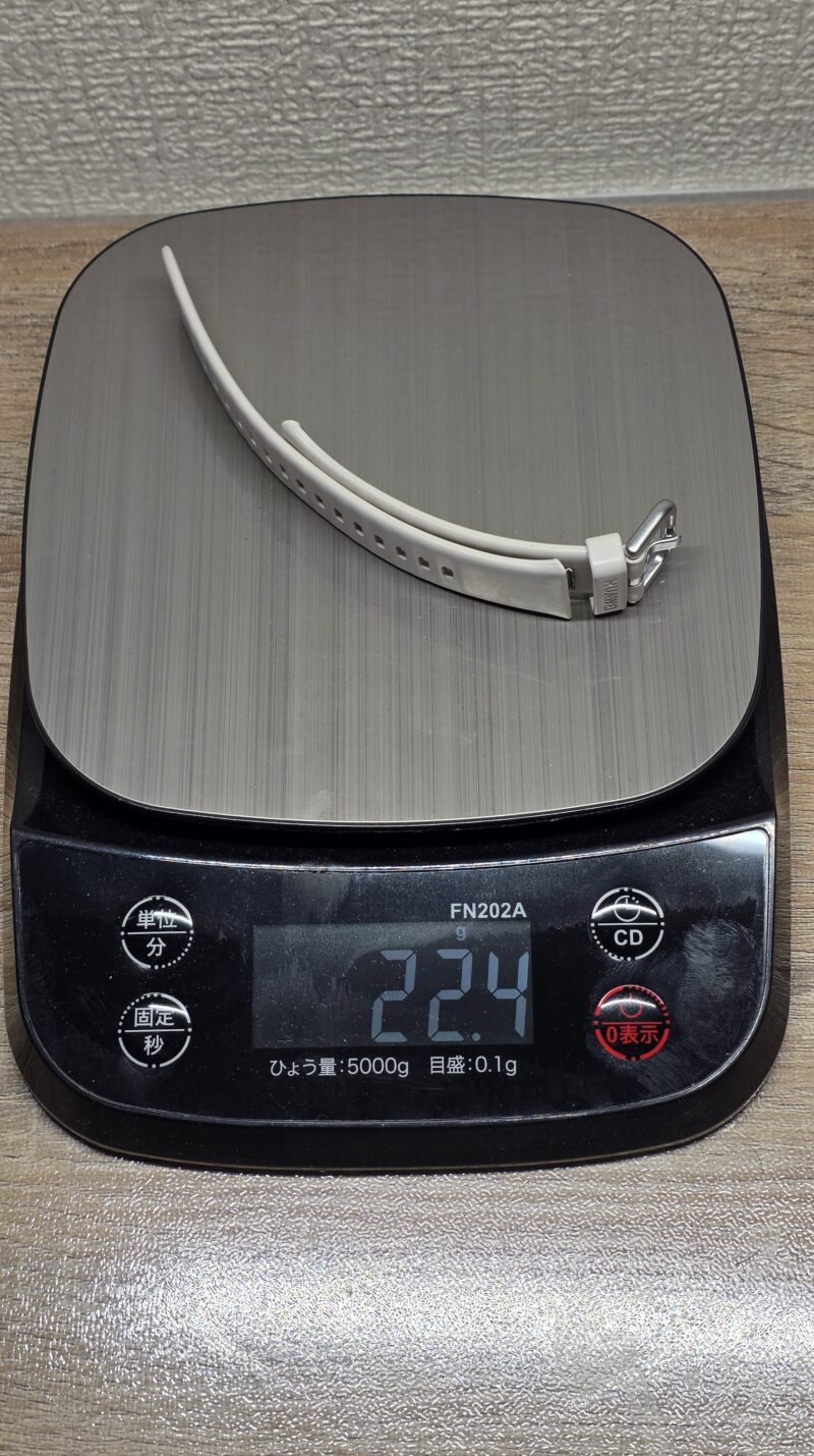 ベルト単体だと22.4g、総重量54.2gと、ナイロンベルトに比べると重いですが、それでも充分軽量です!