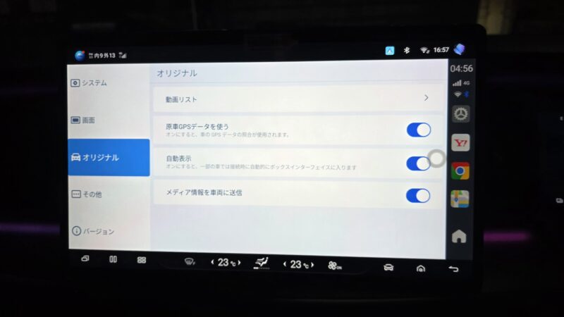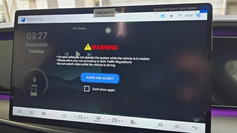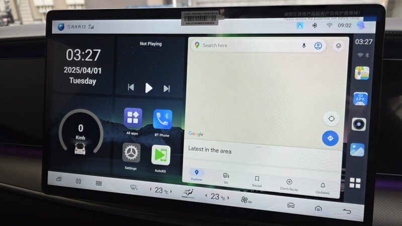 ※ここで注意!BYD SEALION7の場合、Apple CarPlay接続だと接続できないため、切り替えボタンでAndroid Auto接続に変更する必要がありました!