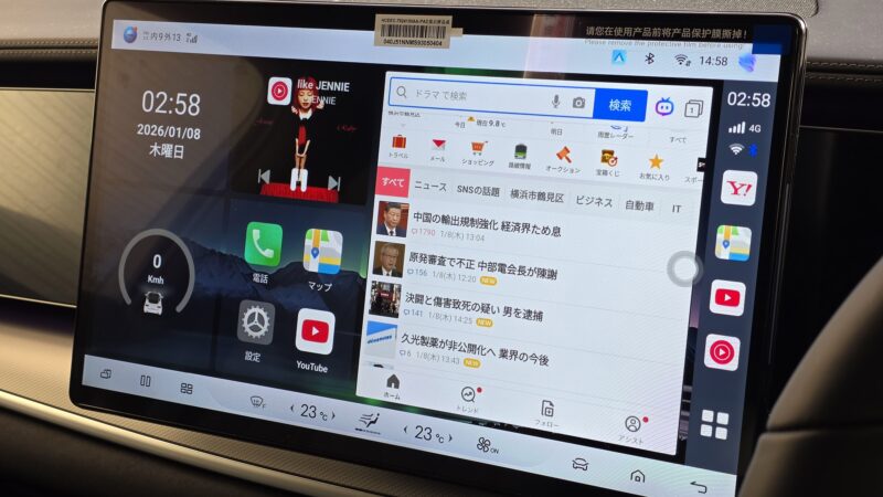 BYD SEALION7は15.6インチの大画面なので、かなり表示領域が大きいです。