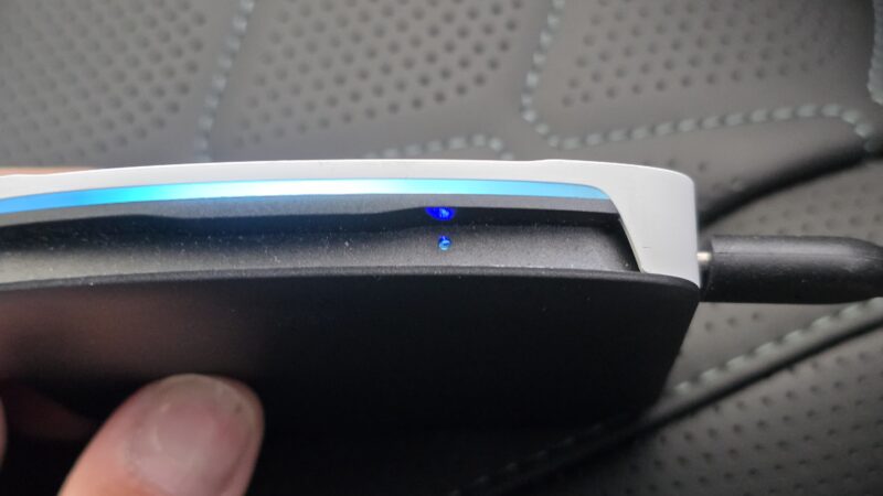本体が給電されると、LEDライトがキレイに光ります(設定変更可能)