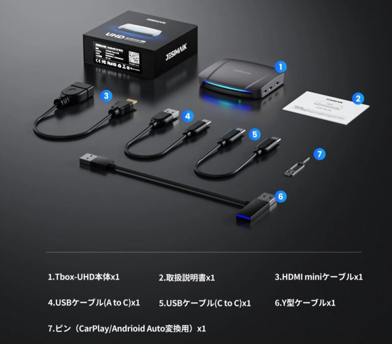 そこで今回は、タッチパネル対応、Andoroid13搭載のAI Box「JESMAIK CPC200-Tbox UHD」を導入してみました。