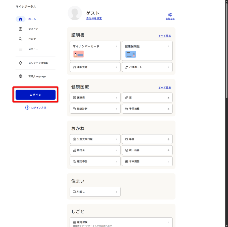 ここからの作業にはマイナポータルへのログインが必要なので、事前にログインできるか確認しておきましょう。