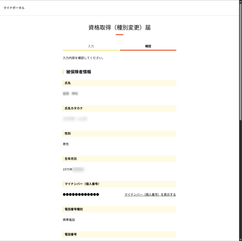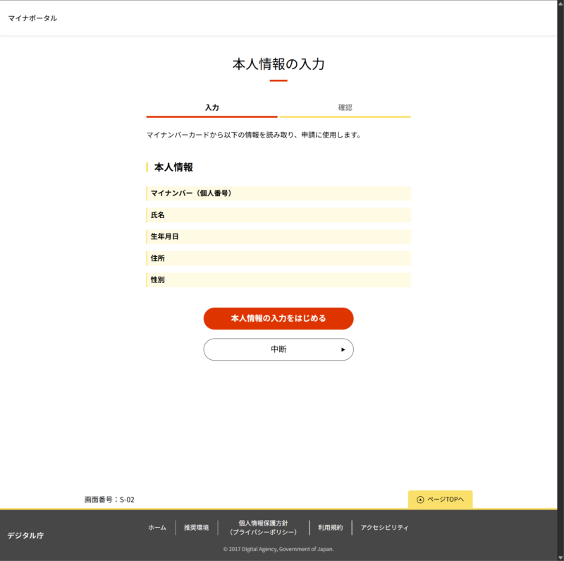 本人情報が自動的に入力されます(こういう所はマイナンバーカード便利!)