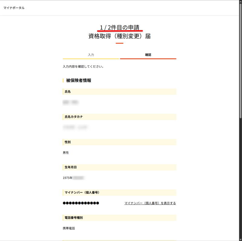 手続きに進むと今回は「1/2件目の申請」となるので、続けて申請できそうです。