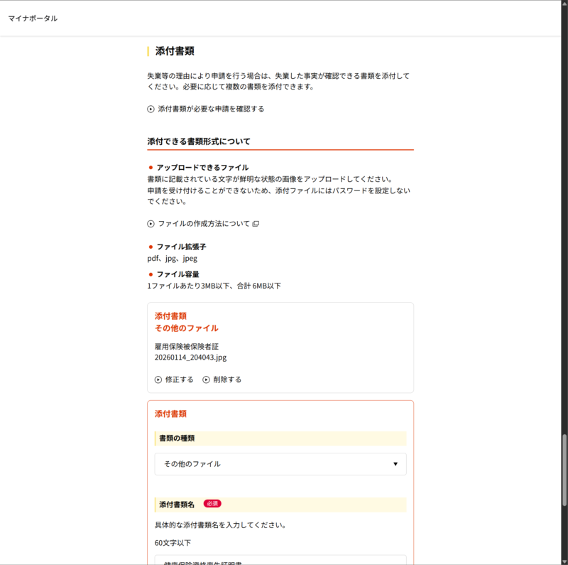 またしても添付書類ですが、先程と同じく健康保険資格喪失証明書と雇用保険被保険者資格取得等確認通知書を添付しました。