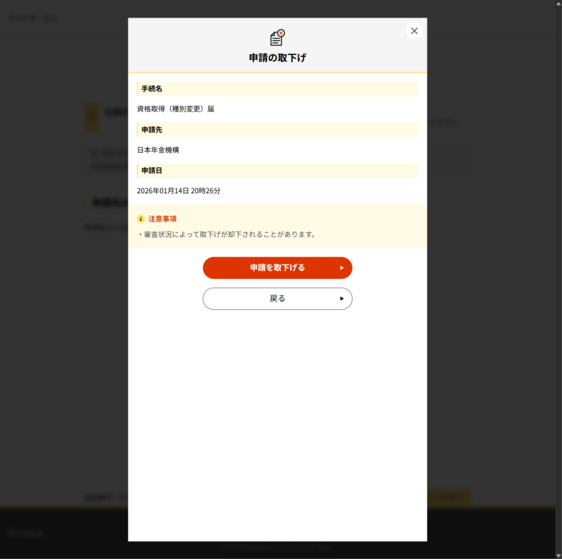 「やること」から進行中の申請を確認すると、見事に資格取得(種別変更)届が重複していました・・・