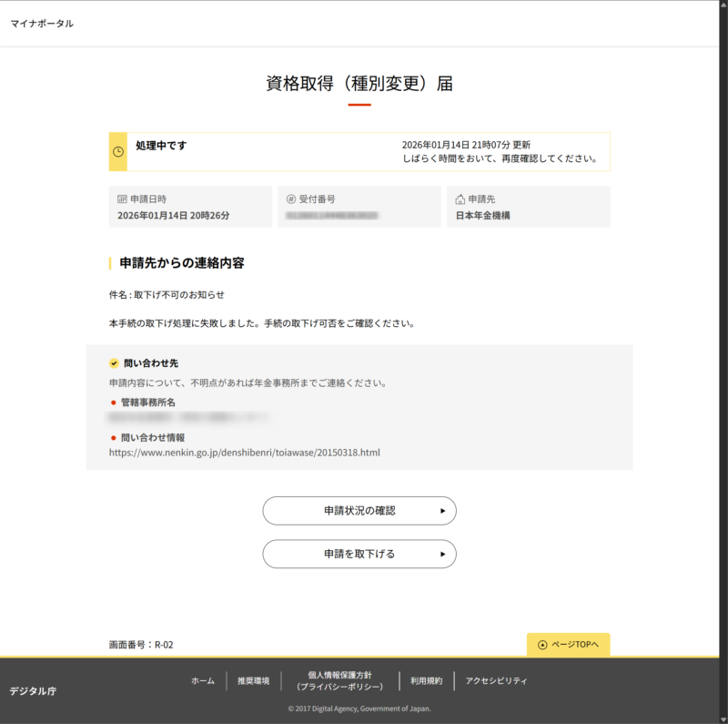 ただ数十分後にマイナポータルからメールがきたので、進行状況を確認すると「件名:取り下げ不可のお知らせ」が!