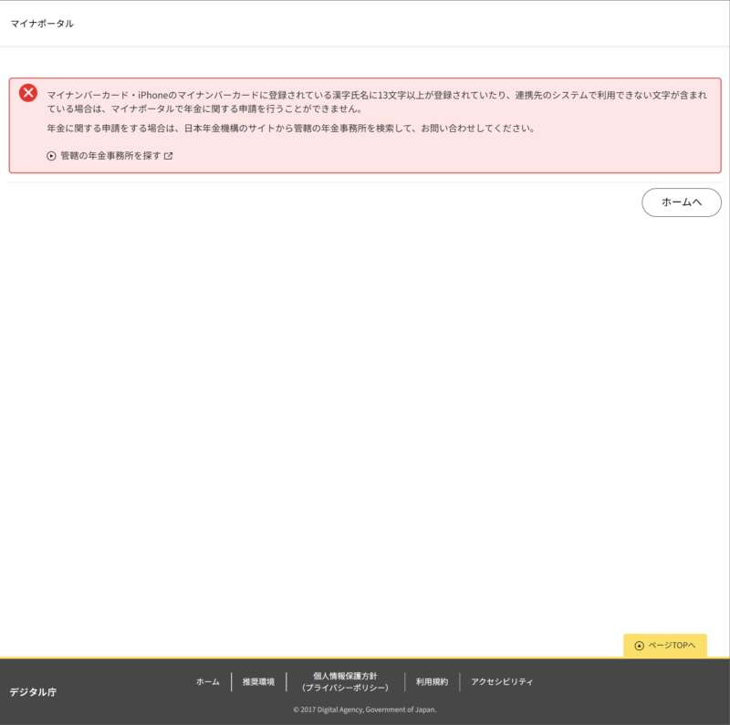 奥さんのマイナンバーカードを使って、同じ手順で申請をしようとしたところ、以下のエラーが!(涙)
