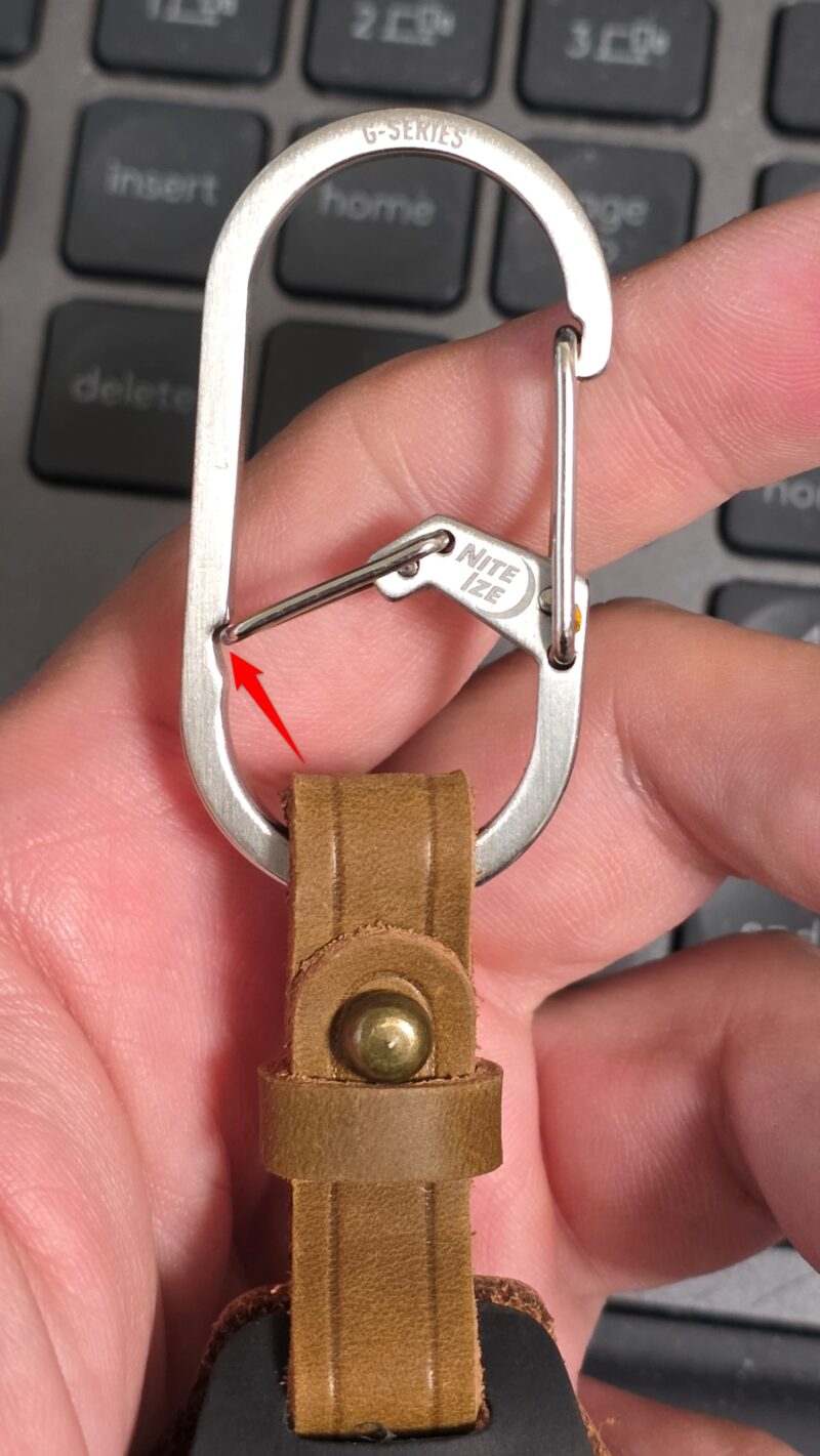このナイトアイズ(NITEIZE)Gカラビナーの一番のポイントは物を通すゲートが二箇所にあることです。
